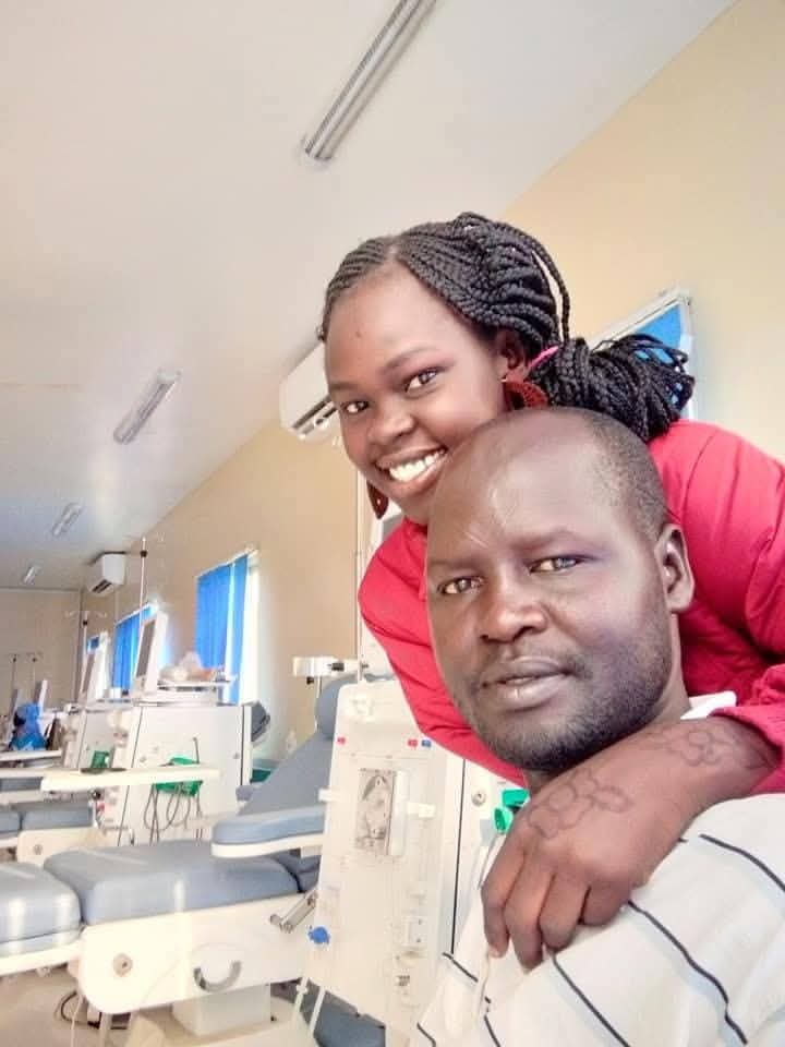 Duom Peter and his late wife in the hospital (above) and how it all started (left)